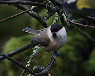 ... apart from the long established identification features that separate this species from Marsh Tit it was interesting to note the bill pattern - the absence of the pale spot at the base of the bill that is diagnostic for Marsh Tit was easily discerned ...